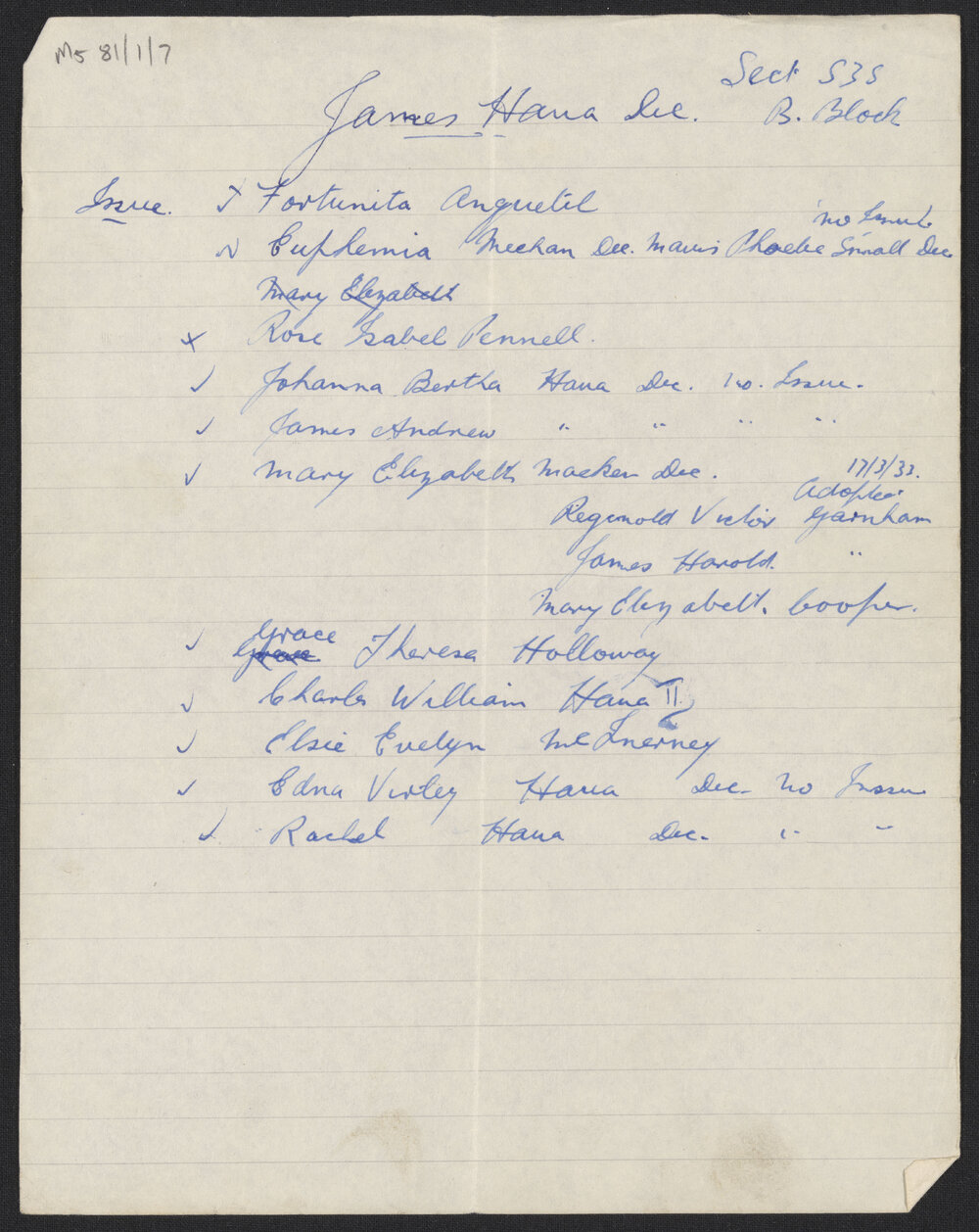 - James Haua, Sect. ...