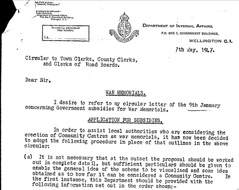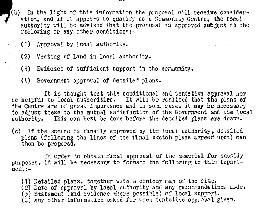 Such an offer wasn't out of the blue, the notion had been talked about before. It was very much in keeping with the wishes of the war generation to have memorials that were useful, and of benefit to the community. For the local authorities, it was a marvellous opportunity but one that meant pivoting away from commemorating the signing of the Treaty of Waitangi and toward remembering the war dead instead. For Tauranga in the 1950s, it was an easy sell, especially given how generous the subsidy on offer was. From MIA advice regarding actual applications, the following rates are outlined.