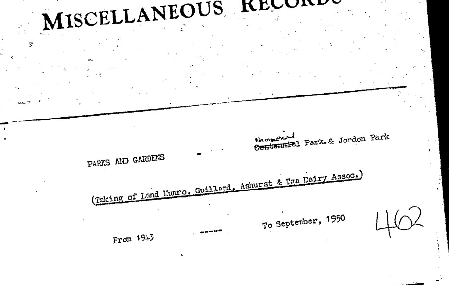 Despite the offer, the area was regularly referred to as Centennial Park throughout the 1940s. Tellingly, the council file for Miscellaneous records pertaining to Parks and Gardens was identified as Centennial Park & Jordon Park as late as September 1950, before being retrospectively renamed Memorial Park.