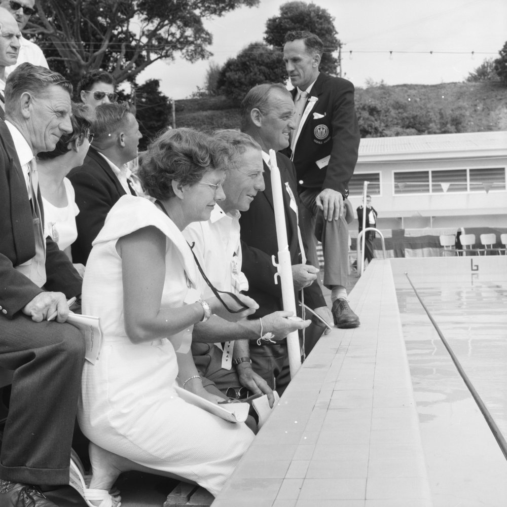 Timekeepers at the swimming championships, 1961 (8 March 1961). Pae Korokī, accessed 22/01/2026, https://paekoroki.tauranga.govt.nz/nodes/view/959