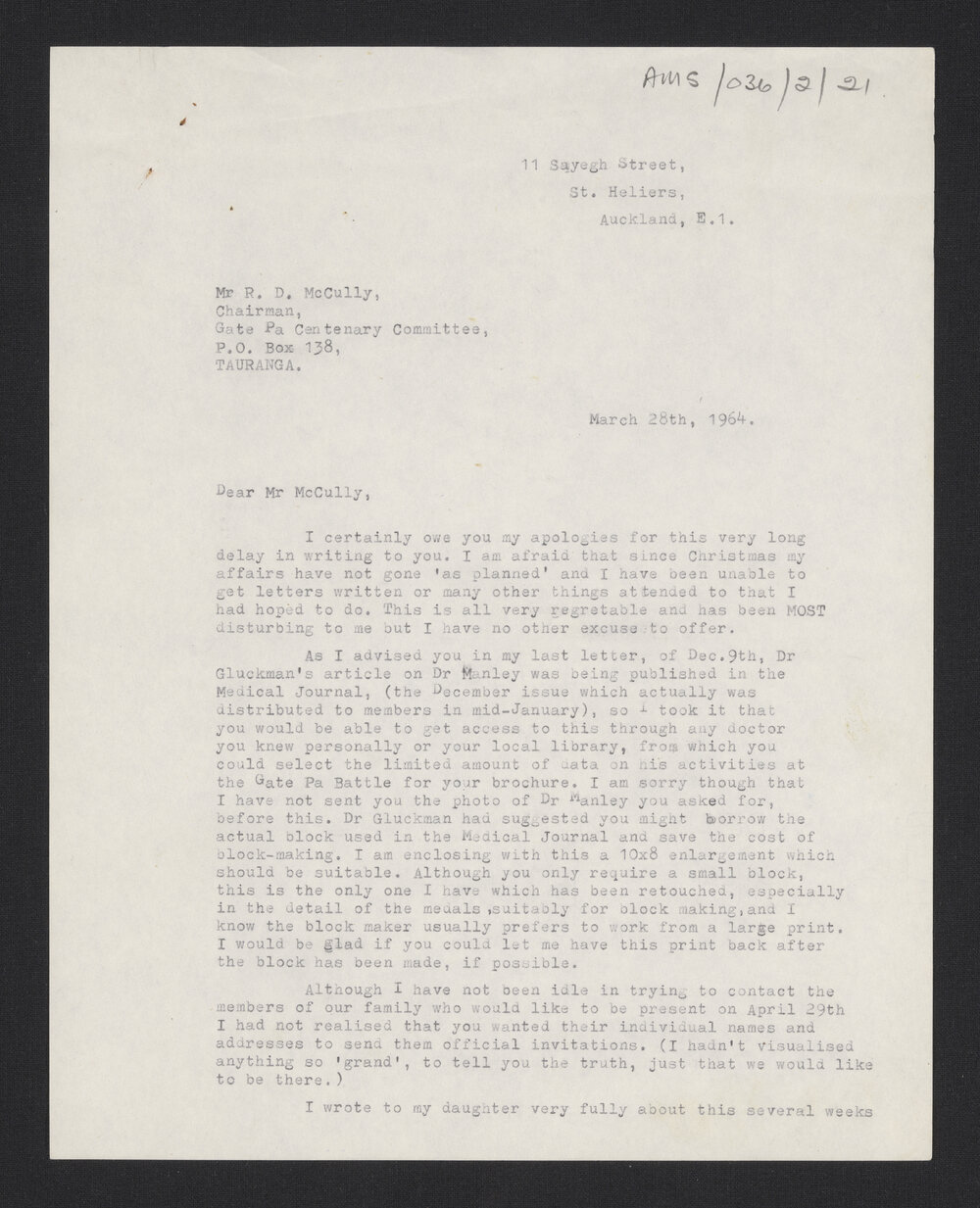 R.G.N. Manley, Inward correspondence from R.G.N. Manley (28 March 1964). Pae Korokī, accessed 02/04/2026, https://paekoroki.tauranga.govt.nz/nodes/view/96807