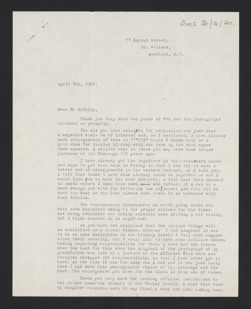 R.G.N. Manley, Inward correspondence from R.G.N. Manley (8 April 1964). Pae Korokī, accessed 02/04/2026, https://paekoroki.tauranga.govt.nz/nodes/view/96808