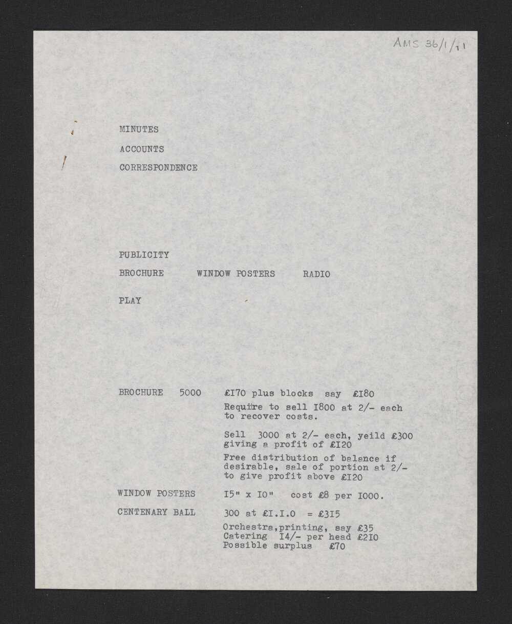 Agenda for Centenary Committee meeting for 3rd December 1963