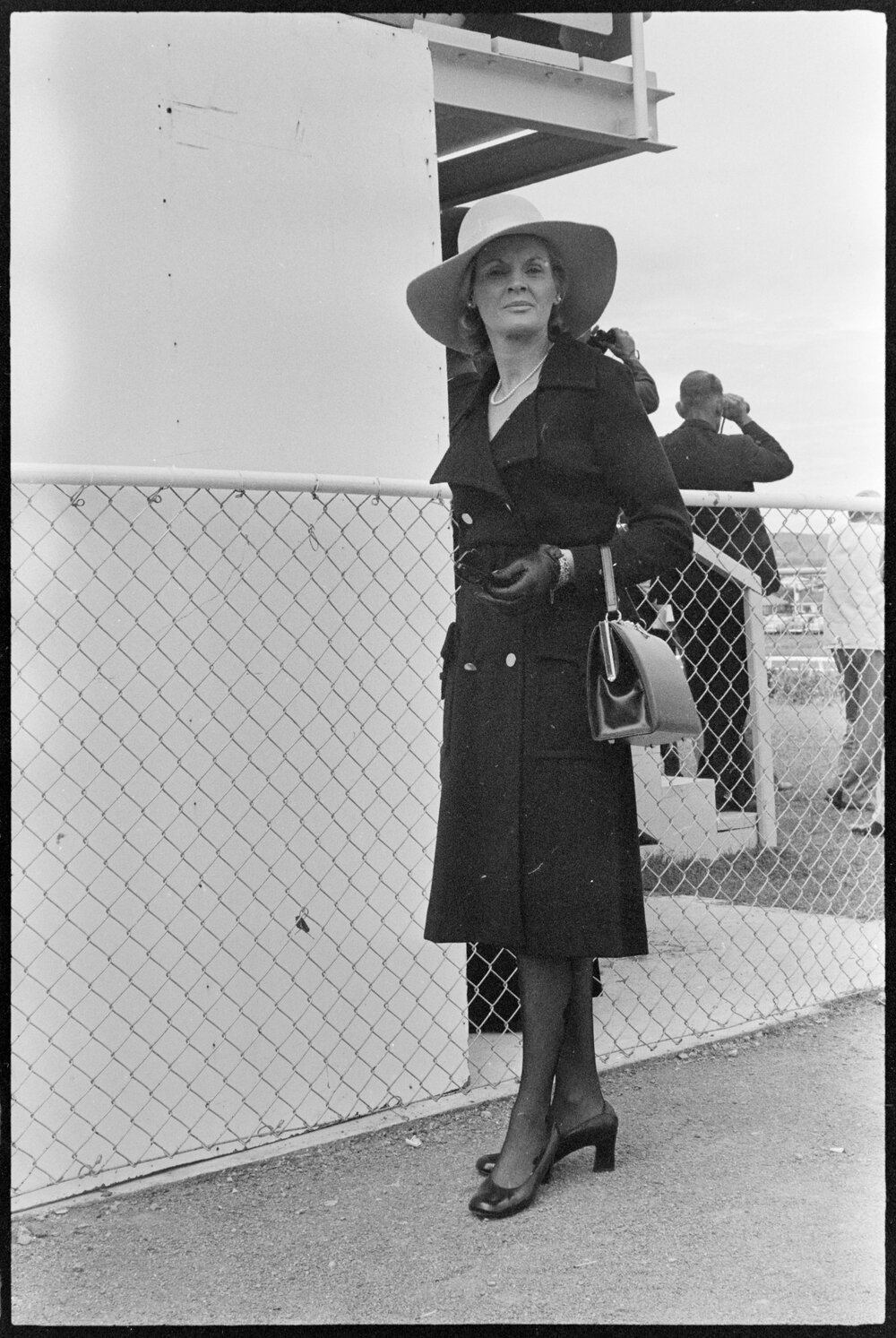 Date6 April 1971Reference Numberphoto gcc-17018DescriptionWomen punters did a complete circuit of fashions at the Tauranga races. Featured is Mrs Tūī Carrington of Epsom. Published 6 April 1971.Physical Description35mm black-and-white negative (1/3)Photographer/CreatorBay of Plenty Times