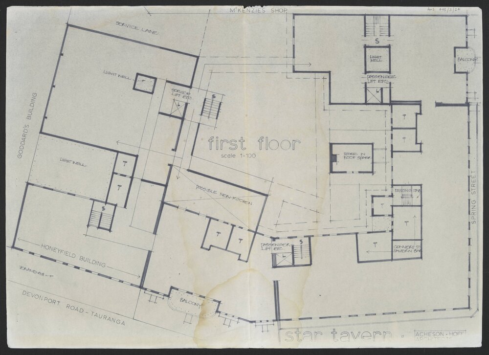Acheson & Hoff Architects, Building plans, Mid City Mall, first floor (c. 1982 to c. 1982). Pae Korokī, accessed 24/03/2026, https://paekoroki.tauranga.govt.nz/nodes/view/98632