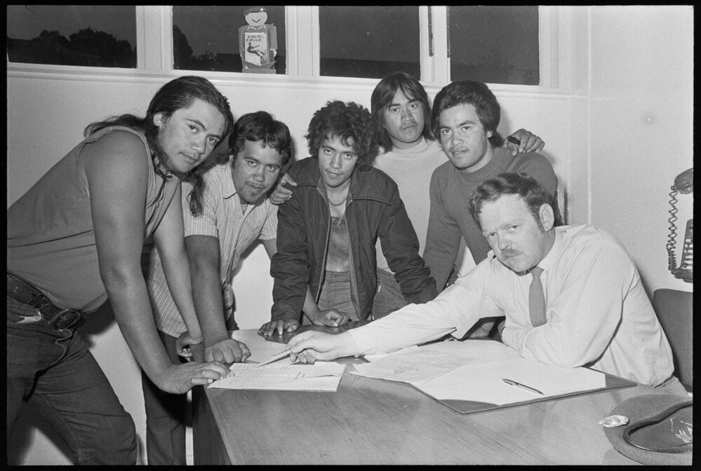 Date29 January 1974Reference Numberphoto gcc-24458DescriptionFour members of the Tarawa family decided to join the New Zealand Territorials. Pictured from left is Vaughan, Brigham, Mathew, family friend Dale Nepia and Logan with Staff Sergeant D. Young of 6NZIR (Hauraki). Published 29 January 1974.Physical Description35mm black-and-white negative (3/3)Photographer/CreatorBay of Plenty Times